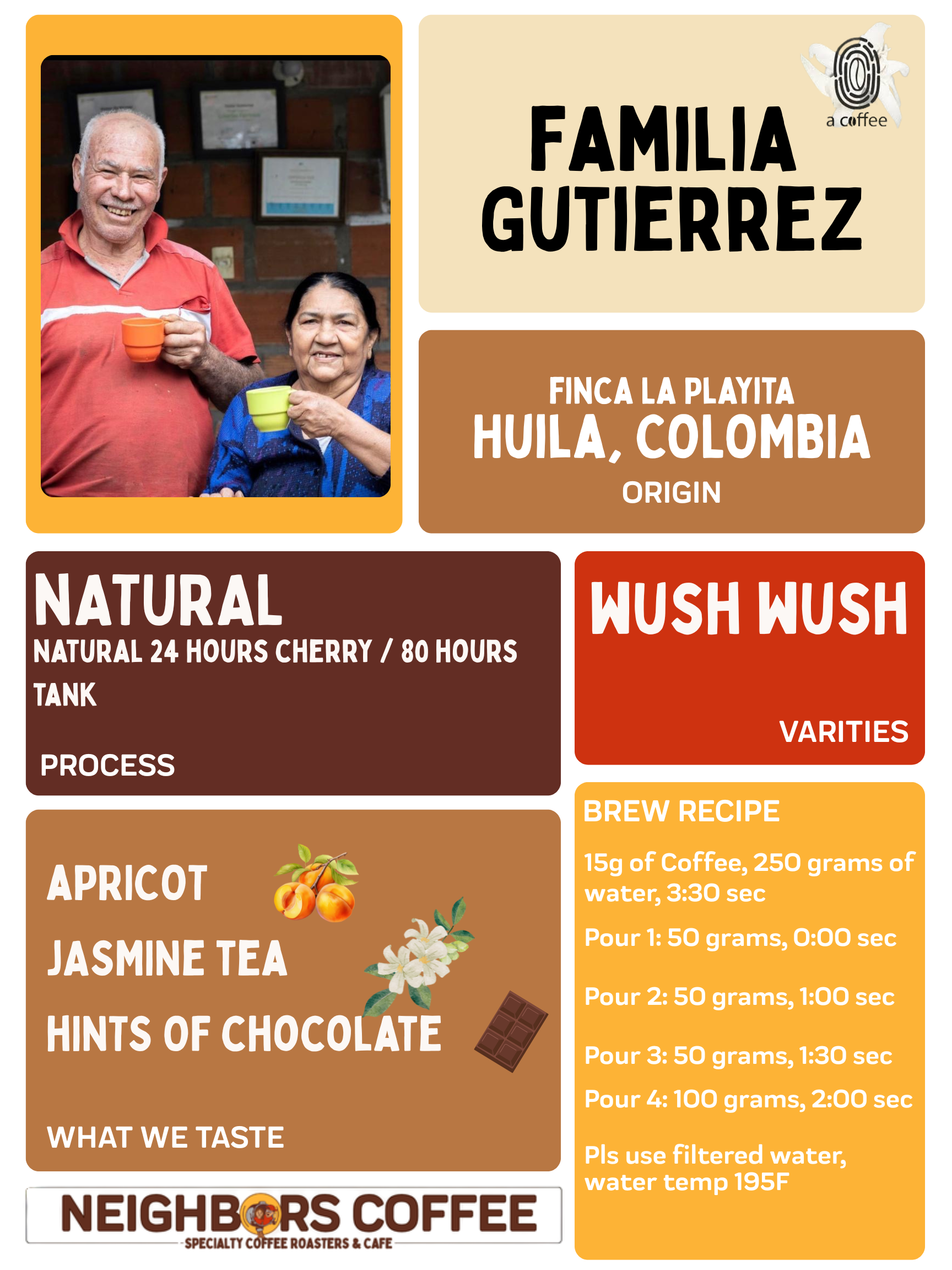 In the cup, you’ll find bright stone fruit sweetness (think apricot), delicate jasmine tea florals, and a long, lingering chocolate finish.